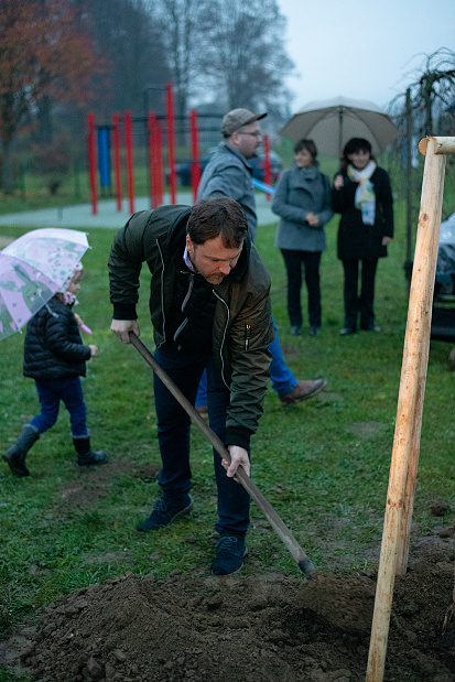 V pátek 4. listopadu proběhlo v Galerii Zámeček vítání dětí do života. Následně tatínkové pomohli vysadit na dětském hřišti U kouzelného dědečka nové stromečky. Výsadba 20 ks listnatých stromů byla realizována za finanční podpory Nadace ČEZ ve výši 110 000 Kč.